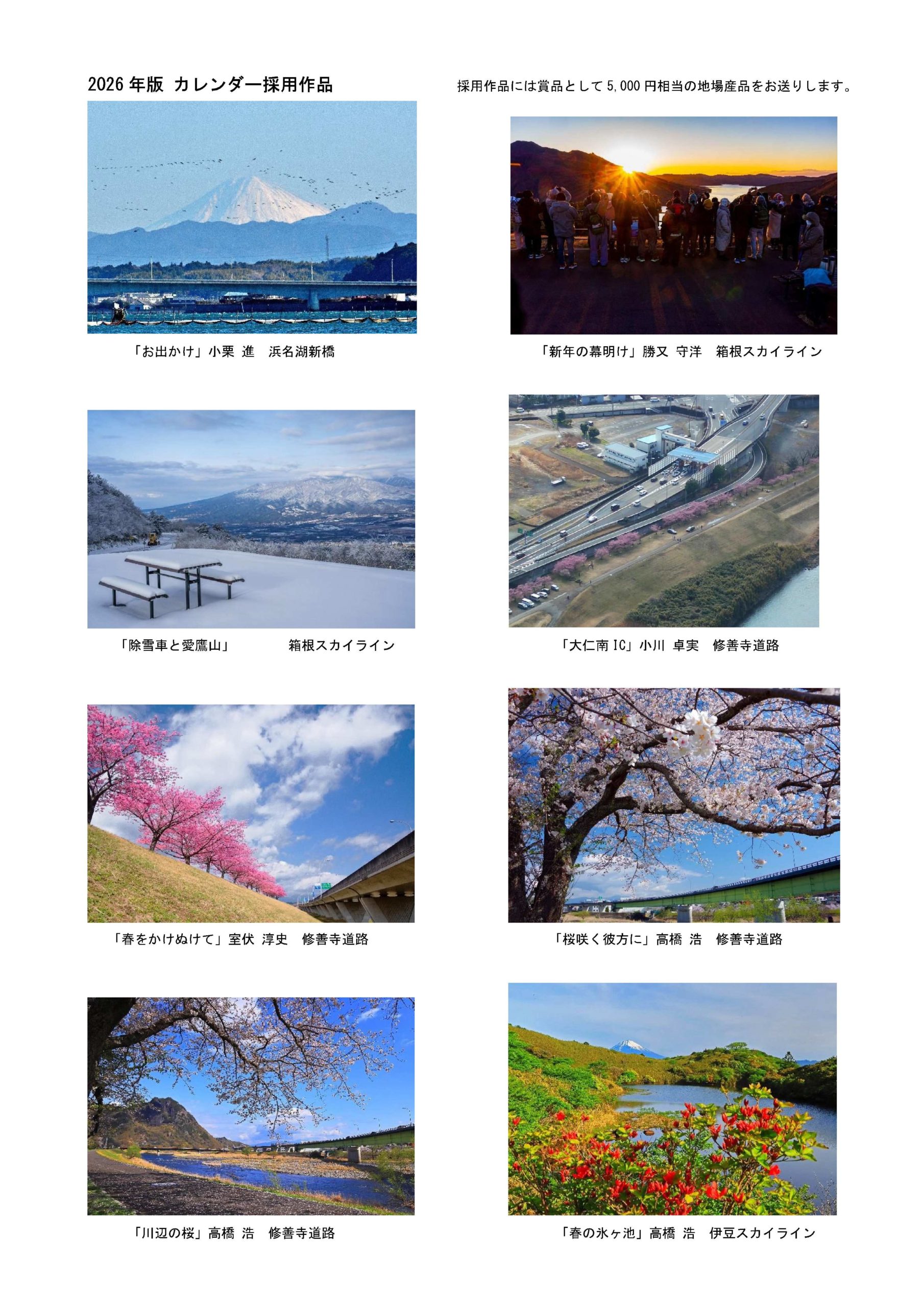なお、「静岡県道路公社2026年版カレンダー」は12月初旬完成の予定です。