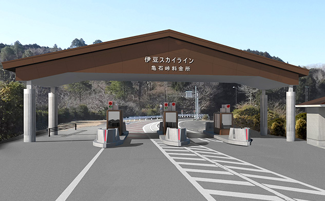 料金所手前の駐車場には無人の観光案内所があり、伊豆半島や箱根のパンフレット等を取り揃えております。