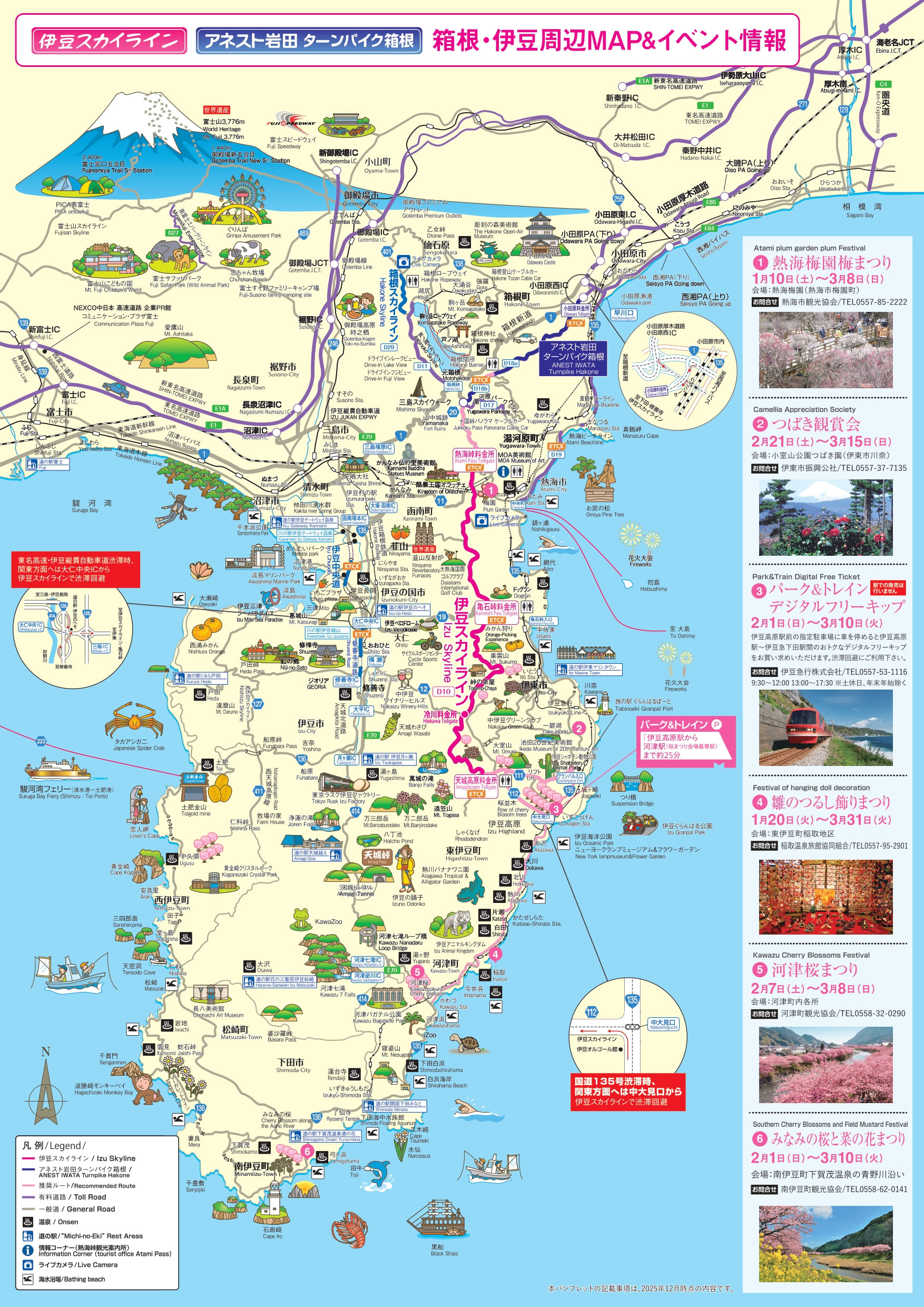 河津桜まつりを始め、伊豆地域で早春のイベントが数多く開催され、伊豆縦貫道や国道135号などの幹線道路が多くのお客様で混雑するこの時期、小田原から伊豆高原までの約70kmを信号なし、絶景の山岳ドライブを安心してお楽しみいただける「伊豆スカイライン」、「アネスト岩田ターンパイク箱根」を、ぜひお得にご利用ください。